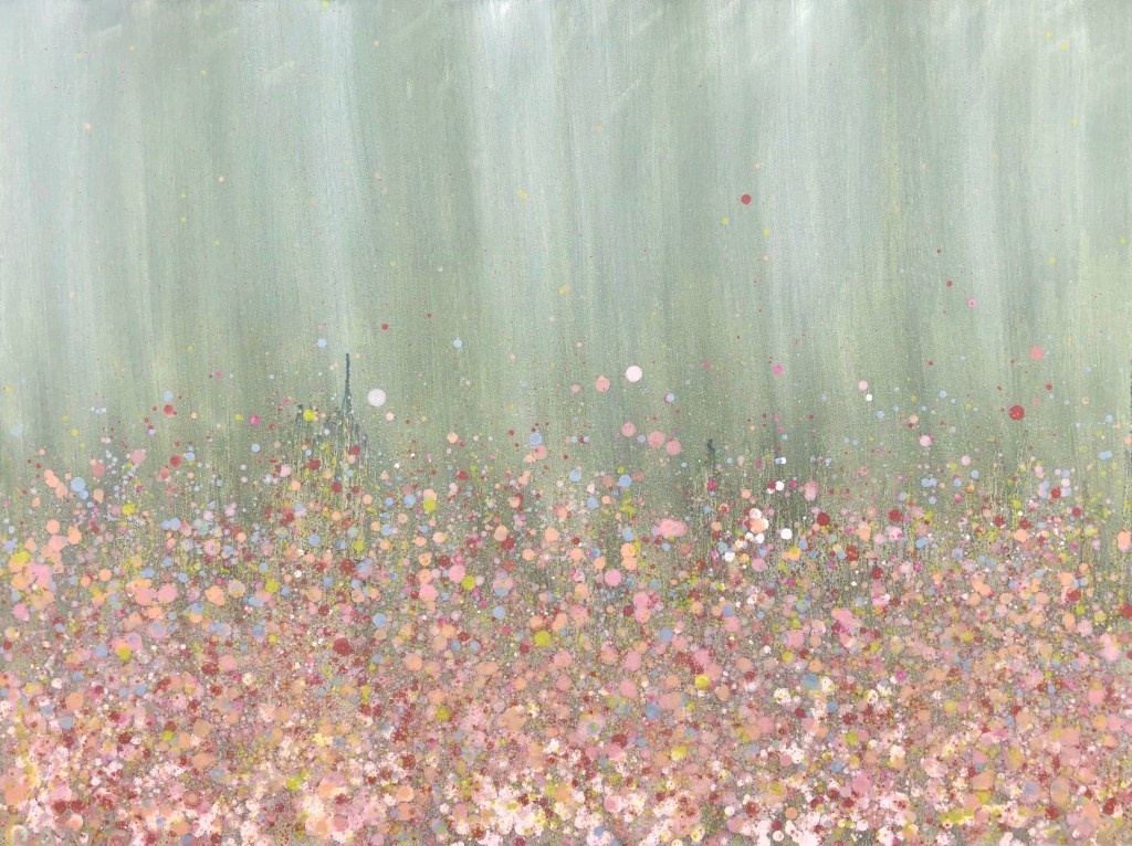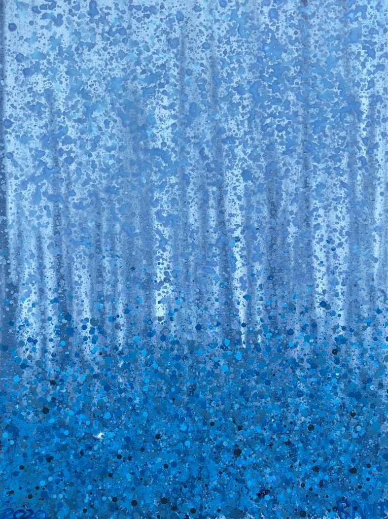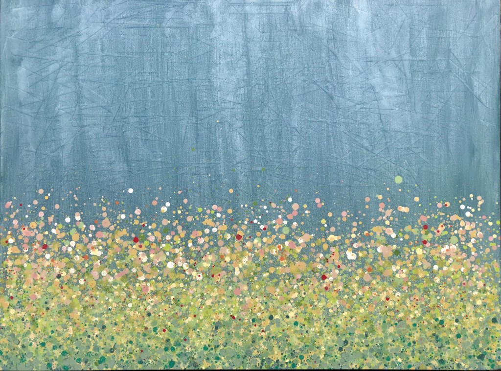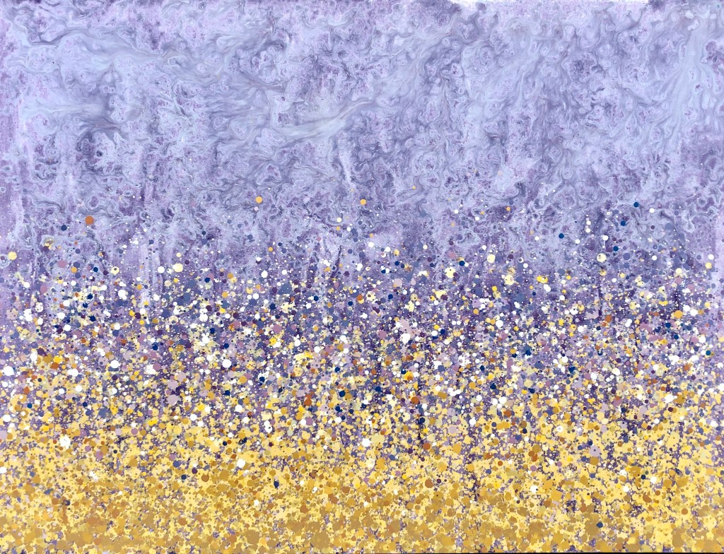 John said it reminded him of popcorn. Unintentional as it may have been, it made me smile, so I am borrowing the reference. I really enjoy the upper portion – the sky – if you will. Mostly I made it in these shades because I rarely use magenta tones and wanted to do something new.